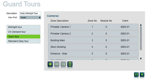 Patriots RTSP Camera Module will allow Patriot to connect and display RTSP cameras live feed within the Patriot Camera interface. Many cameras use the RTSP format which allows live streaming from a huge range of different brands and camera systems. Cameras can be linked to one or mutiple alarm panel zones so that when an alarm from the panel is received, Patriot can pop up and live feed that is important for the operator to view. Virtual Guard Tours can be setup and run using RTSP connected cameras. Live Feed Virtual Timed Guard Tours (With VGT Module)
